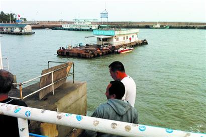 ????“鐵鏈斷了一根,剛才這個浮碼頭在海上快漂走了,幸虧發(fā)現(xiàn)及時?!币幻浇用裾f,沒想到大風(fēng)這么厲害。幾名碼頭的工作人員在岸邊將一根纜繩拋向浮碼頭,其中一人開小沖鋒艇登上浮碼頭,將纜繩固定好。“我們這僅僅是加固,風(fēng)太大了?!爆F(xiàn)場一名工作人員說,他們提前做了防御,但下午發(fā)現(xiàn)不夠牢固,所以緊急找人來進(jìn)行了加固。