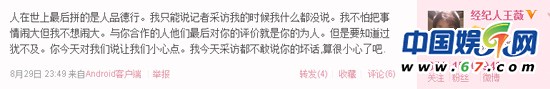 孫菲菲前經(jīng)紀(jì)人微博截圖