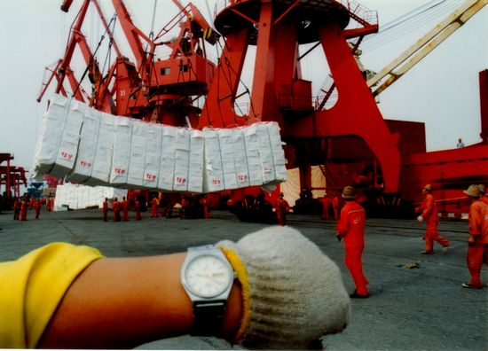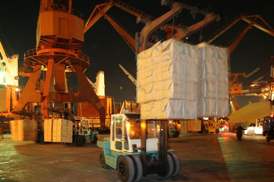 “破紀錄最漂亮的一次,是2005年。當時的記錄是一條叫‘松樹箭’的日本船創(chuàng)下的,用8小時20分,卸了126,00噸紙漿?!比味孛骰貞浧鹉且惶欤那槿匀患?,“那天夜班的時候,隊友們決