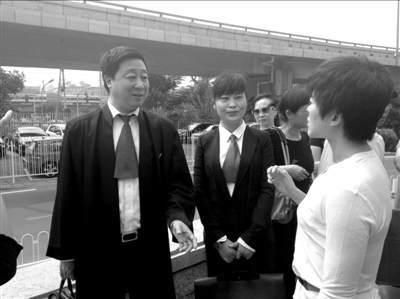 庭審結(jié)束后,辯護律師接受記者采訪。本報記者孫思婭攝