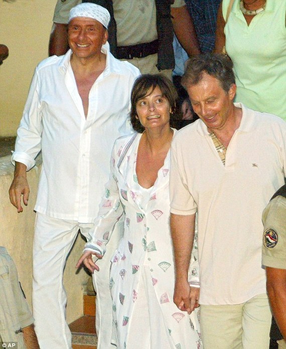 2004年,貝盧斯科尼(左)邀請(qǐng)托尼·布萊爾夫婦在豪宅做客。