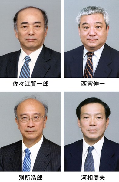 除了駐華新大使西宮伸一(右上)外,此前日本政府同時(shí)更換了駐華、駐美、駐韓三位大使。現(xiàn)任外務(wù)省事務(wù)次官佐佐江賢一郎(左上)將出任駐美大使,外務(wù)省負(fù)責(zé)政治事務(wù)的外務(wù)審議官別所浩郎(左下)將出任駐韓大使,官房副長(zhǎng)官補(bǔ)河相周夫(右下)將出任外務(wù)次官。