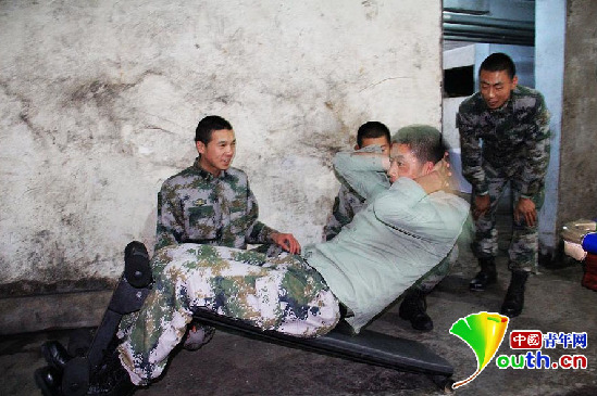 天池哨所一年有9個(gè)月的時(shí)間是雨雪天氣,戰(zhàn)士們不能在戶外進(jìn)行活動(dòng),不過(guò)這抵擋不住戰(zhàn)士們運(yùn)動(dòng)的熱情。每當(dāng)風(fēng)雪季節(jié)來(lái)臨,戰(zhàn)士們就在地下室進(jìn)行鍛煉和健身。