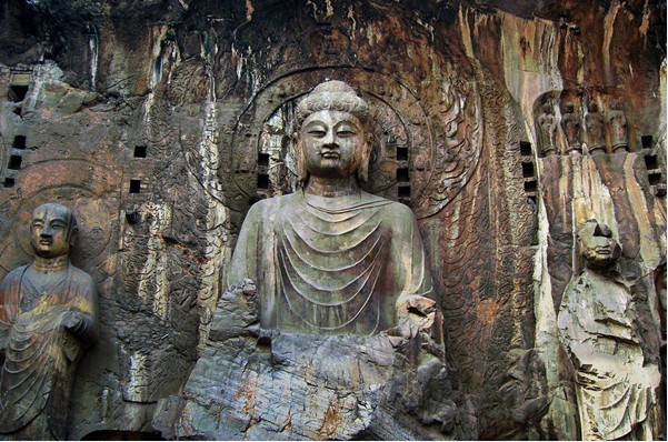????龍門石窟開鑿于北魏孝文帝遷都洛陽(yáng)前后(公元494年),后來(lái)歷經(jīng)東西魏、北齊、北周,到隋唐至宋等朝代又連續(xù)大規(guī)模營(yíng)造達(dá)400余年之久。密布于伊水東西兩山的峭壁上,南北長(zhǎng)達(dá)1公里,共有97000余尊佛像,最大的佛像高達(dá)17.14米,最小的僅有2厘米。龍門西山崖壁上有北朝和隋唐時(shí)期的大、中型洞窟50多個(gè)。東山全是唐代的洞窟,其中大、中型洞窟有20個(gè)。