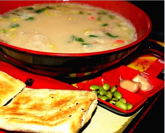 ????做洛陽(yáng)漿面條時(shí),要把酸漿倒在鍋里煮至開鍋,放入香油、五香粉等調(diào)料。漿水煮沸時(shí),把面條下鍋,再放入鹽、蔥、姜、花生、芝麻、黃豆、芹菜等調(diào)料(也可以加入芹菜葉、紅蘿卜絲等),將面條煮熟即可。食用時(shí),根據(jù)的自己的口味放入辣椒、韭花醬味道會(huì)更佳。