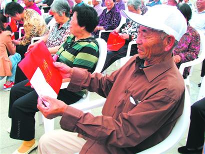 ????去年國慶節(jié)前,家住城陽區(qū)夏莊街道王家曹村的黃培芳老人收到了子女送來的禮物——一份養(yǎng)老保險繳費單。15年的養(yǎng)老保險費一次性繳清后,黃培芳在年底滿60周歲時就可領(lǐng)到養(yǎng)老金。黃培芳說,“現(xiàn)在我們村里子女孝順老人,時興的是送養(yǎng)老保險了。這樣,兒女們減輕了負擔(dān),老人們也沒有了后顧之憂?!苯?,記者又來到了膠南市尹家村見到了尹衍俊老人,“今年提標(biāo)了,7月份開始每月漲了55塊,我現(xiàn)在一月能開473塊錢了!”老人激動地告訴記者。
