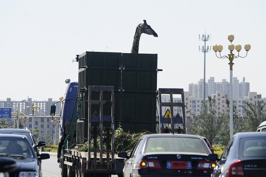 9月28日,山東省臨沂市,備受矚目的“大個子”長頸鹿“美臨”迎來了搬家的一天。據(jù)了解,這只生在臨沂,長在臨沂的長頸鹿是只六歲的母鹿,而本次搬遷也是它第一次跨出園區(qū)大門。