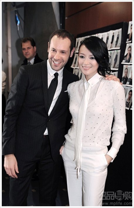 章子怡身著Salvatore Ferragamo的2011秋冬女裝亮相,一身白色帥氣而溫柔的領(lǐng)帶款紗襯衫、鑲水鉆針織開衫搭配白色翻腳西裝褲,頗顯精致干練。