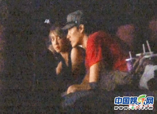 錦榮(右)看電影時(shí)把下巴靠在蔡依林的肩上撒嬌,她嘟嘴賞他白眼