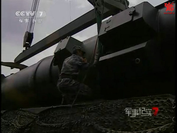 資料圖:二炮部隊(duì)野外吊裝新型東風(fēng)中程戰(zhàn)略導(dǎo)彈。