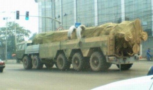 資料圖:網(wǎng)友拍攝的中國新型東風(fēng)25導(dǎo)彈車。