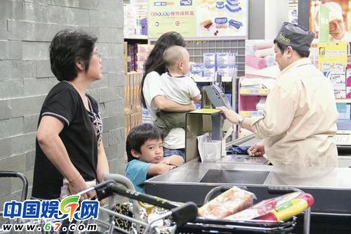 張柏芝結(jié)賬時(shí)懷抱小兒子Quintus,大兒子Lucas吃醋翻白眼以示不滿