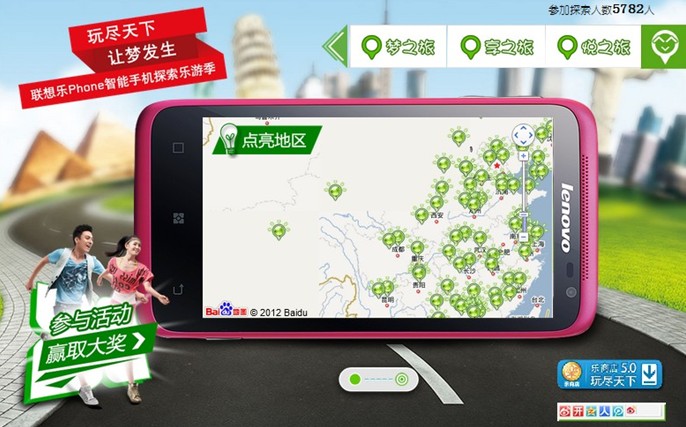 ????不為平庸的生活所束縛,才能擁有自由的靈魂。勇敢探索未知的美好世界,才能發(fā)現(xiàn)最真實的自己。繼音樂達人、運動達人在全國掀起全民音樂潮、運動潮后,“玩盡天下,讓夢發(fā)生”聯(lián)想樂Phone智能手機探索樂游季大型主題活動盛大起航,邀您加入聯(lián)想樂Phone“Discovery Doer探索達人”活動,更有超豐富夢想旅游大獎及熱門智能手機等你贏取,你準備好了么? ????鐵馬秋風塞北,多情西子湖畔。戀戀風景,你的心是否早已按捺不???行行攝攝,記錄祖國大好河山。拿起手機即刻加入聯(lián)想樂Phone“Discovery Doer探索達人”陣營,隨時隨地與朋友樂享你的美妙旅行心情! ????聯(lián)想樂Phone探索樂游記,點亮最美中國