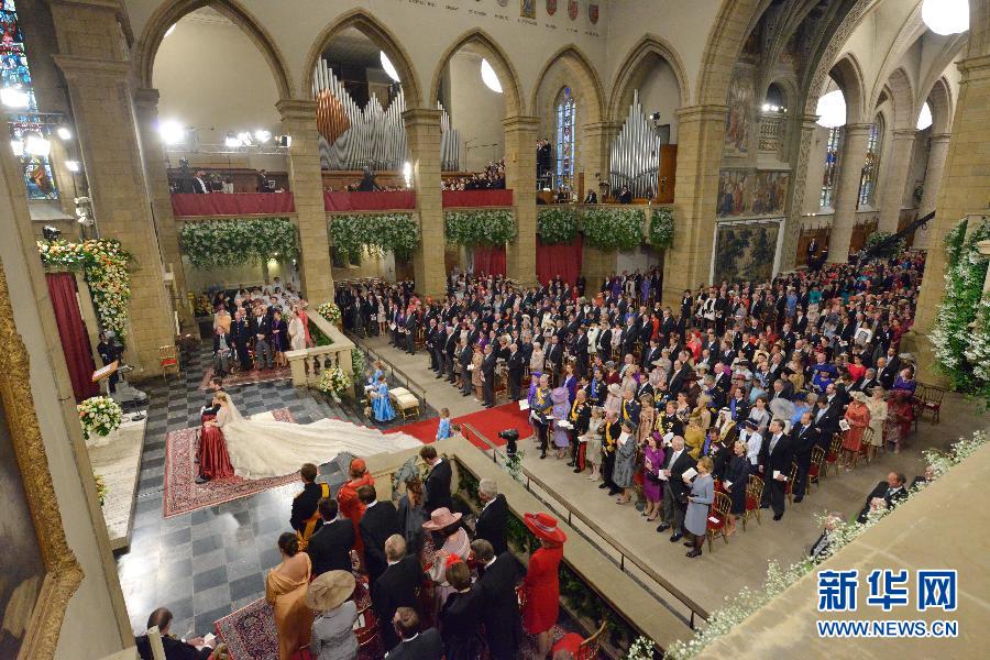 10月20日,盧森堡大公儲(chǔ)紀(jì)堯姆與大公儲(chǔ)妃斯蒂芬妮在盧森堡圣母大教堂舉行宗教婚禮。 新華社發(fā)(盧森堡大公府提供照片)
