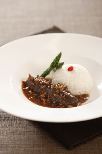 ????采用梅花鹿肉,采用帶皮紅燒的做法;鹿肉具有利五藏,調(diào)血脈,益氣血的功效。