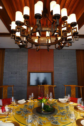 ????餐廳可容納約186位客人用餐,共有7個(gè)包房,2個(gè)雅間,1個(gè)大廳,包房的名字分別以“九鼎”命名。最大的包房是“商鼎”,可以供26位客人用餐,“冀鼎”是可容納20位客人的全分餐制長方桌房間。