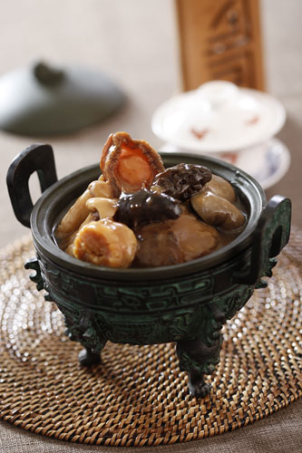 ????寶鼎菜肴經(jīng)“天下一品”御廚們潛心研制并吸收清宮廷御膳秘方中之奧妙,加以改進(jìn),由魚翅、鮑魚、海參、裙邊、野山菌等高檔原材料精制而成。此菜汁濃味厚,四溢醇香,營養(yǎng)豐富,回味無窮,配以寶鼎之器皿,更顯九五之尊的高貴與豪華,并賜之以福,鴻運(yùn)傳家。