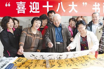 ????■昨天,市北區(qū)鎮(zhèn)江路街道組織了“喜迎黨的十八大”書畫作品展,共展出由社區(qū)書畫愛(ài)好者創(chuàng)作的書畫作品200余幅。(記者 王群 攝)