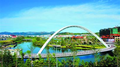 二是高水準(zhǔn)規(guī)劃,打造綠色生態(tài)城區(qū)。為全面提高城市園林綠化景觀水平,在綠化設(shè)計上求新,在質(zhì)量上求精,形成層次分明、季節(jié)變化明顯、具有地方特色的綠化景觀。如:李村河上游二期工程采用公園結(jié)合自然和生物多樣性設(shè)計理念,模擬自然生態(tài)系統(tǒng)對草地、林地、水系等系統(tǒng)進行整體設(shè)計,為生物提供良好的棲息環(huán)境,恢復(fù)動植物群落,保護生物多樣性。通過植物自然修復(fù)和水體過濾,每天可以產(chǎn)生大量的再生水,起到了凈化水體和美化環(huán)境的作用。河底防滲采用黏土防滲,形成獨特的 “土壤—植物—微生物”生態(tài)系統(tǒng)。在河道兩側(cè)正在建設(shè)的 “城市綠道”,不僅有活動廣場、健身場地、親水平臺,還有可以同時滿足步行和騎車需求的景觀長廊。為老百姓提供生態(tài)宜居舒適溫馨的生活環(huán)境。
