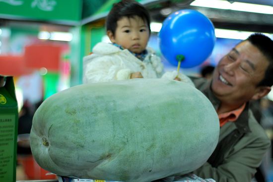 首屆山東國際農(nóng)交會今天上午在城陽區(qū)開幕,圖為碩大的冬瓜