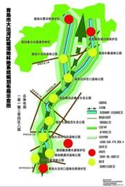 “三帶”,即堤防綠道生態(tài)游覽帶、生態(tài)基干林帶、生態(tài)保護(hù)控制帶。其中,將在堤頂公路兩側(cè)緩坡上建設(shè)以喬木林為主的堤防綠道生態(tài)游覽帶,使之成為青島市的南北骨干“綠道”,估算總長度400公里;在堤防工程外側(cè)建設(shè)200米寬的基干林帶,萊西湖外建設(shè)500米寬的基干林帶;基干林帶外側(cè)構(gòu)建以農(nóng)田林網(wǎng)為框架,經(jīng)濟(jì)林、豐產(chǎn)林、圍村林、村莊綠化為重點的鄉(xiāng)村綠化體系,作為生態(tài)保護(hù)控制帶。