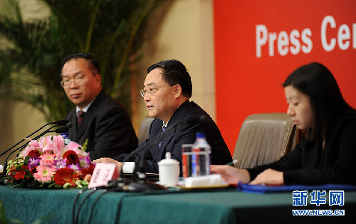 2012年11月9日,十八大新聞中心舉行記者招待會,請中共中央組織部副部長王京清介紹黨的建設工作,并回答記者提問。圖為王京清在記者會上。新華網(wǎng)陳競超 攝