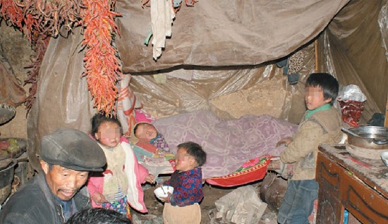 5個(gè)死亡男孩的伯伯陶進(jìn)才接受記者采訪。身旁是陶家小孩。(新京報(bào)記者 劉剛 攝)