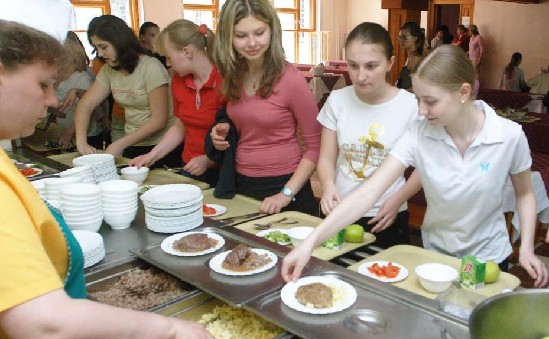 當(dāng)?shù)貢r(shí)間2007年5月23日,俄羅斯莫斯科,學(xué)生在學(xué)校食堂用餐。目前,俄羅斯并沒有全面推行免費(fèi)學(xué)生餐的計(jì)劃。對(duì)于家庭困難的學(xué)生,俄羅斯政府的補(bǔ)助額度為一天8盧布,而城市早餐的平均價(jià)格為10盧布,午餐要20至25盧布。