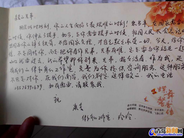 深哥病危的消息傳出后,也引起了四川方面的關(guān)注,當(dāng)?shù)孛襟w進(jìn)行了大篇幅報(bào)道。大家紛紛寄來祝福、現(xiàn)金等等,希望深哥“頂住”、“好好活下去”。一位網(wǎng)友在卡片里寫到:“我們有難時(shí),你挺身而出,你有困難時(shí),我們豈能袖手旁觀!”