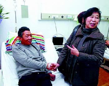 16日上午9時(shí)許,淅瀝的小雨中,在公交車上出手救了犯病司機(jī)的“紅衣大姐”褚鳳蘭,帶著營(yíng)養(yǎng)品來(lái)到阜外醫(yī)院探望于會(huì)海。盡管沒(méi)有穿著紅衣服,剛走進(jìn)病房,于會(huì)海就認(rèn)出了眼前這位就是他的救命恩人?!按蠼?謝謝你救了我的命!”于會(huì)海緊緊握著褚鳳蘭的手連連感謝。