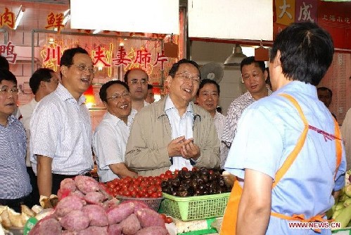 2010年6月17日,中央政治局委員、上海市委書記俞正聲視察上海市徐匯區(qū)。新華社發(fā)