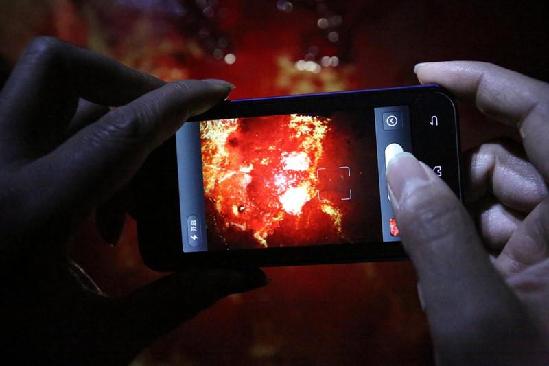 2013年1月15日,一名記者用手機(jī)拍攝湖南省婁底市新化縣上梅鎮(zhèn)北渡中心小學(xué)一名學(xué)生受傷現(xiàn)場(chǎng)的血際。