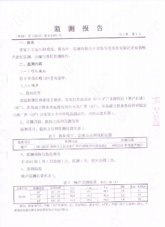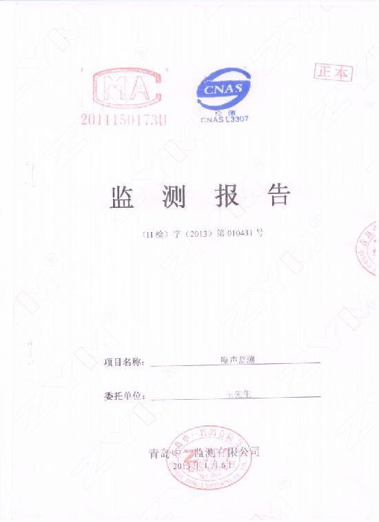 獨立噪音監(jiān)測機構(gòu):青島中一監(jiān)測有限公司檢測時間2013.1.4