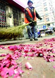 ????記者從市北、市南環(huán)衛(wèi)公司了解到,昨天他們的環(huán)衛(wèi)工人全都是提前上班,在早上7點前道路保潔完畢。“我們環(huán)衛(wèi)工人清掃出來的爆竹皮大約有10噸,比去年少了三成多?!笔斜眳^(qū)建管局的劉局長說。市南環(huán)衛(wèi)公司的有關(guān)負(fù)責(zé)人說,他們當(dāng)天清掃的爆竹皮有10噸多,比去年少了4噸。市市政公用局環(huán)衛(wèi)處的陳處長說,市民的環(huán)保意識逐漸提高,是爆竹皮減少的一個重要原因。