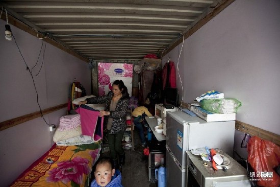 在上海,一些農(nóng)民工家庭甚至住在用廢舊集裝箱搭蓋的“房子”里。