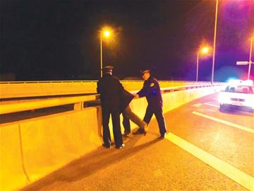 3月18日晚上10時(shí)許,湖島派出所接到市民報(bào)警:在環(huán)灣路瑞昌路立交橋上,他看到一名男子在上面來回走動,還時(shí)不時(shí)看看橋下面,并且該男子完全不顧馬路上來回穿梭的車輛。