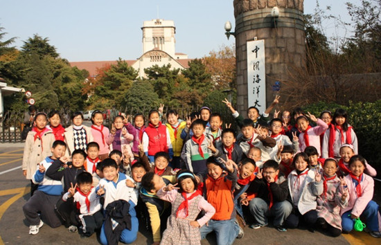 他曾經(jīng)帶領(lǐng)孩子們到中國(guó)海洋大學(xué)的校園里,讓孩子們?cè)谫即蟮牟賵?chǎng)上自由奔跑?!昂⒆幼羁释木褪亲杂伞⑸?、博物館、實(shí)驗(yàn)室……可是,在小學(xué)那小得可憐的操場(chǎng)上,又怎能讓孩子們自由的奔跑呢?”