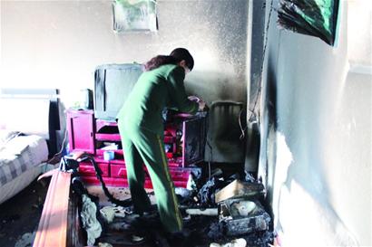 記者在現(xiàn)場看到,起火的南屋墻壁已經(jīng)被濃煙熏黑,倒在地上的長沙發(fā)木質(zhì)扶手被燒焦,旁邊一個(gè)小太陽電暖器被完全燒毀,屋里的電視和電腦也被高溫烤壞了屏幕。記者注意到被火燒得最嚴(yán)重的位置,兩根電線從墻壁上耷拉下來,電視柜上還有個(gè)被燒壞的舊插排。消防部門的專家已經(jīng)趕到現(xiàn)場進(jìn)行勘查。租客小張告訴記者,小太陽電暖器已經(jīng)很長時(shí)間沒有用了,但可能一直連接在插排上沒有拔。周圍的居民稱,老樓的電線以及都已經(jīng)老化了,連接電暖器等大功率的家電就有些吃力,這次起火很可能跟電線或者插排短路有關(guān)。消防部門正在調(diào)查火災(zāi)的真正起因。(記者 黃飛 攝影報(bào)道)