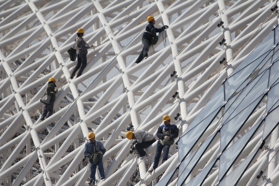 青島新聞網(wǎng)3月27日訊 從冬天的沉默中蘇醒,迎接春天的生機(jī)勃發(fā),青島進(jìn)入“世園倒計(jì)時(shí)”年。距離2014年4月25日青島世園會(huì)開幕還有390多天,青島世園會(huì)一線員工們的工作熱情史無前例地高漲,一個(gè)個(gè)捷報(bào)不斷傳來:各大場(chǎng)館、主體建筑陸續(xù)封頂,精細(xì)綠化