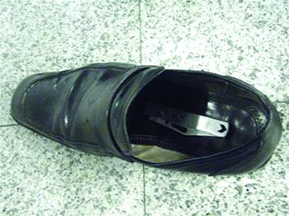 ????據(jù)悉,青島機(jī)場安檢工作人員在國內(nèi)通道執(zhí)行安檢任務(wù)時(shí),發(fā)現(xiàn)一名中國籍男子在接受人身檢查的過程中神情慌張,隨即提高了警惕,對其進(jìn)行了重點(diǎn)檢查。檢查中,工作人員發(fā)現(xiàn)該旅客右鞋面不斷報(bào)警,而左邊卻不報(bào)警,于是請?jiān)撁每兔撔瑱z查,發(fā)現(xiàn)其鞋內(nèi)藏匿了一把刀