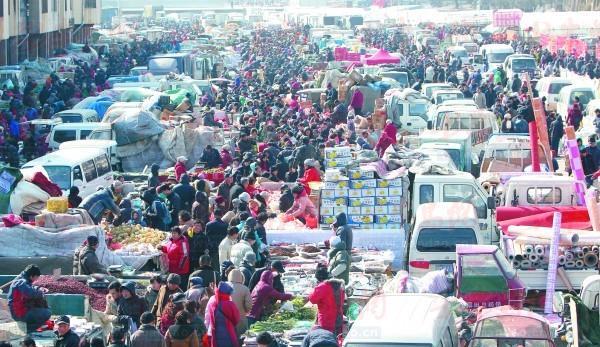 ▲ 李村河道上的李村大集,逢汛期經(jīng)常得轉(zhuǎn)移到兩邊的道路上。