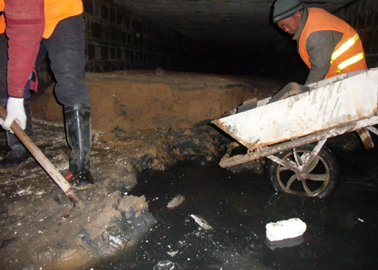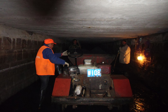 洞內(nèi)清淤只能靠一鏟一鏟地挖