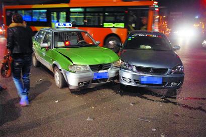 前晚10時30分左右,記者趕到現(xiàn)場看到,三菱轎車右前輪已經(jīng)變形凹陷進去,出租車的前保險杠因為撞擊也凹了進去,由于沖撞劇烈水箱也破了?!拔?月1號才從4S店里提出來,里程表上還不到200公里。 ”轎車司機王先生覺得挺