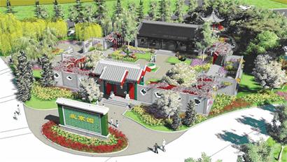 北京園占地2465平方米,位于中華園最北端,坐北朝南,區(qū)位優(yōu)勢明顯。北京園采用傳統(tǒng)四合院規(guī)矩的布局形式,將打造“一軸四點(diǎn)五區(qū)”的景觀結(jié)構(gòu),形成穩(wěn)重大氣、方正內(nèi)斂的展示格局,突出“美麗北京、合院生活”主題。園內(nèi)影壁、垂花門、正房(敞廳)、六角亭構(gòu)成北京園的游覽主軸線與景觀標(biāo)志點(diǎn),入口區(qū)、合院庭院、后