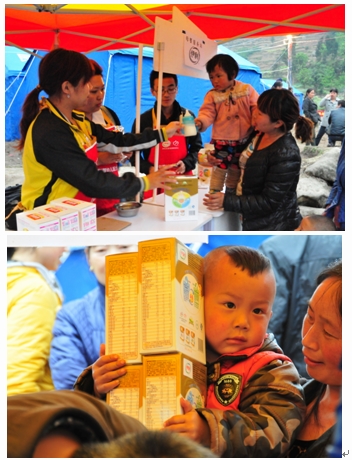 ????連線中的伊利流動母嬰服務(wù)站的工作人員表示,高何鎮(zhèn)靖口村受災(zāi)情況較為嚴重,路邊的房屋基本已經(jīng)垮塌,無法居住,當?shù)厝罕娙话仓迷趲づ窭?,整體救援情況比較到位。但由于震后災(zāi)區(qū)病菌繁殖特別快,考慮到身體脆弱的寶寶容易受到病菌的侵害,特地先用開水對奶瓶進行消毒,再給寶寶調(diào)制奶粉,并在現(xiàn)場指導(dǎo)媽媽們科學喂養(yǎng)。 ????此外,連線中的伊利救援人員稱,邛崍高何鎮(zhèn)災(zāi)民的情緒比較穩(wěn)定,救援部隊已將帳篷、食物、藥品等急需物資分配到高何。伊利集團在捐助5000箱物資、2萬雙手套和近千頂帳篷的基礎(chǔ)上,再次捐助的200萬元奶粉也于4月23日凌晨運抵蘆山縣,解決了當?shù)丶比眿胗變耗谭鄣娜济贾薄?/p> |