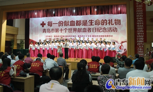 ????本次慶祝活動的主題是“每一份獻(xiàn)血都是生命的禮物”,一曲大合唱《世界看過來》為活動開場做了精彩的表演。主持人與我們共同回顧了無償獻(xiàn)血隊(duì)伍中 “熊貓血”應(yīng)急獻(xiàn)血志愿服務(wù)隊(duì)的感人事跡,以及2012年青島市十大微塵之星萬人流動血庫為島城無償獻(xiàn)血事業(yè)做出的貢獻(xiàn)。在2010-2011年度,我市榮獲全國無償獻(xiàn)血先進(jìn)城市稱號,這是我市連續(xù)8次(17年)獲得全國無償獻(xiàn)血先進(jìn)城市光榮稱號,有477人榮獲全國無償獻(xiàn)血奉獻(xiàn)獎金獎,591人榮獲銀獎,1709人榮獲銅獎,16人榮獲全國無償捐獻(xiàn)造血干細(xì)胞獎奉獻(xiàn)獎,青島市廣播電視臺榮獲全國無償獻(xiàn)血促進(jìn)獎。無償獻(xiàn)血工作也成為我市精神文明建設(shè)的一個突出亮點(diǎn),成為青島市展示城市和諧文明的窗口和傳承市民殷殷愛心的載體。
