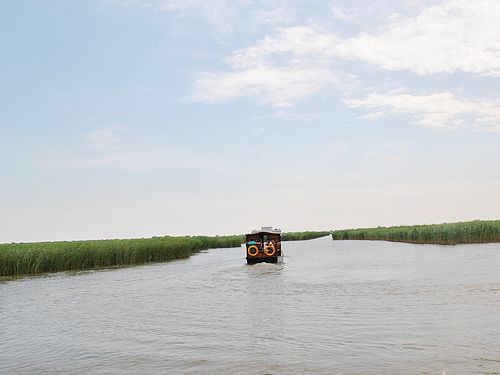 乘船穿梭在蘆葦叢中