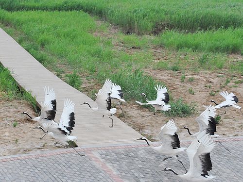 ????據(jù)保護區(qū)講解員介紹,區(qū)內(nèi)共有野生動物1555種,其中鳥類296種。國家一級重點保護鳥類有丹頂鶴、白頭鶴、白鶴、大鴇、東方白鸛、黑鸛、金雕、白尾海雕、中華秋沙鴨、遺鷗10種,國家二級保護鳥類有灰鶴、白枕鶴、大天鵝、小天鵝、白琵鷺等49種。在《中日保護候鳥及其棲息環(huán)境協(xié)定》所列227種鳥類中,區(qū)內(nèi)有155種,占68.3%;在《中澳保護候鳥及其棲息環(huán)境協(xié)定》所列81種鳥類中,區(qū)內(nèi)有53種,占65.4%。區(qū)內(nèi)共有種子植物393種,其中野生種子植物116種。具有代表性的木本植物有刺槐、旱柳、檉柳,草本植物有蘆葦、鹽地堿蓬等。其中國家二級重點保護植物野大豆0.4萬公頃,天然蘆葦2.7萬公頃,天然草地1.2萬公頃,是中國沿海最大的新生濕地自然植被區(qū)。黃河口地形地貌和獨特的自然資源形成了以“奇、特、曠、野、新”為主要美學(xué)特征的自然景觀和生態(tài)旅游資源。