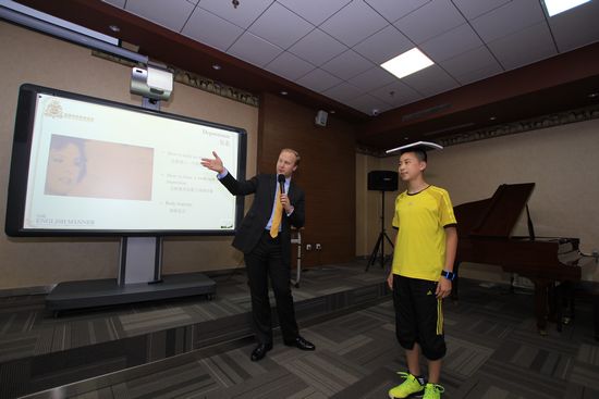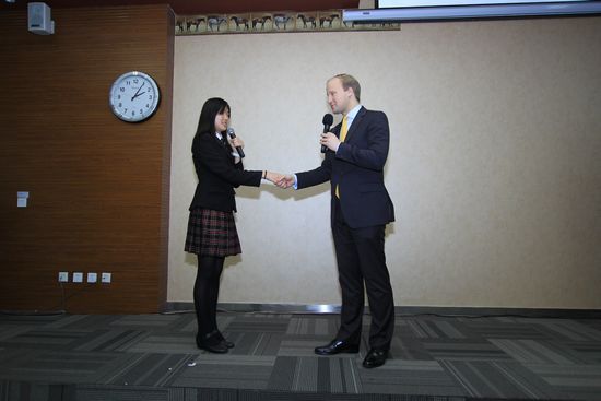 “在英國,與人握手必須用右手,掌心向里,與對方的手掌平行,一般情況下只需要上下?lián)u晃2-3下。但是我來到青島以后,發(fā)現(xiàn)人們有時會搖動好多下” ,漢森說著還不忘學學青島人握手時熱情的表情。漢森一邊細致的講解著英國的握手文化,一邊還不忘打趣地談到自己來到青島后發(fā)現(xiàn)的禮儀變化,一番話逗得在場家長們哈哈大笑。