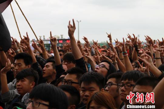 圖為音樂(lè)節(jié)舞臺(tái)下與歌手互動(dòng)的歌迷們 王雅嵐 攝